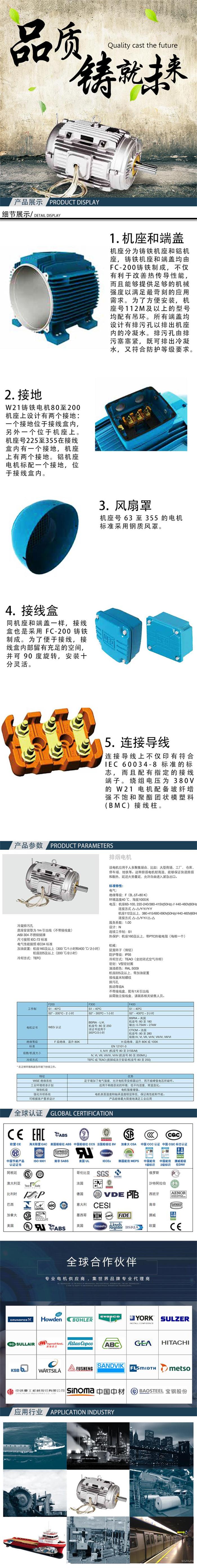 WEG電機的機座號63-132的包裝為紙箱,機座號160-355電機的包裝為紙箱或者木箱,根據(jù)不同的機座號和不同的安裝方式,WEG選擇不同的包裝。